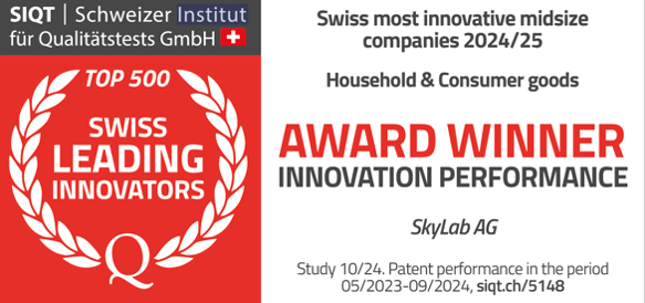 Skylab has been honored by the Swiss Institute for Quality Tests (SIQT) as one of the most innovative mid-sized companies in Switzerland for 2024/25 in the field of Household & Consumer goods. The SIQT Innovation Award recognizes Swiss mid-sized enterprises to honor their innovation strength.